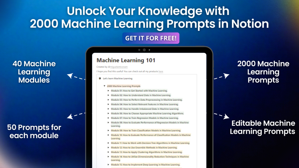 The Ultimate Collection of 2000 Machine Learning Prompts is a comprehensive resource designed to help enthusiasts learn and experiment with Machine Learning, allowing them to become familiar with their functioning and applications in different contexts. Likewise, it can enhance their understanding of how to use and effectively leverage Machine Learning for various tasks and projects