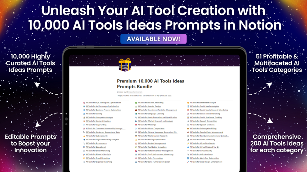 Unleash Your AI Tools Creation with The Ultimate Collection of 10,000 AI Tools Ideas Prompts Bundle!