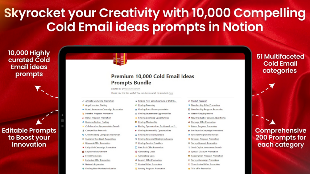 Skyrocket your Creativity with 10,000 Compelling Cold Email ideas prompts Bundle!