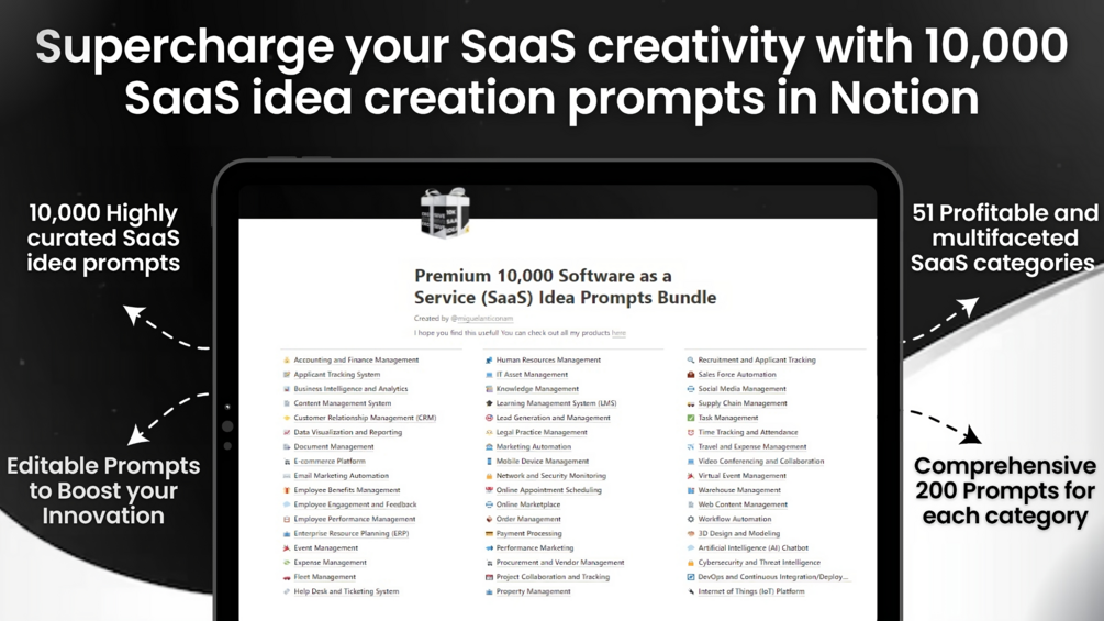 Premium 10,000 Software as a Service (SaaS) Idea Prompts Bundle