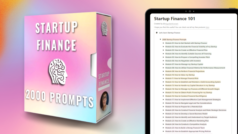 - Say goodbye to financial uncertainty and hello to a new level of financial knowledge with the ultimate collection of 2000 Startup Finance Prompts. Whether you're just starting out or looking to take your business to the next level, these prompts will help you gain the financial skills and strategies you need to succeed.
