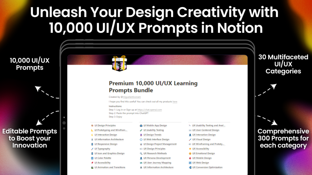 - With this collection, you'll have access to a vast array of prompts that will help you learn and experiment with different UX/UI tactics and refine your design strategy to optimize your results.